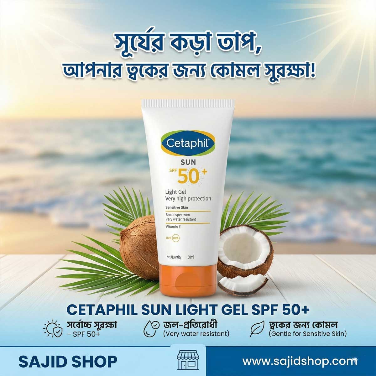 Cetaphil-এর এই Sun Light Gel ফর্মুলা বিশেষভাবে sensitive skin-এর জন্য তৈরি। এটি ত্বকে irritation কমায় এবং daily use-এর জন্য safe। বাংলাদেশের গরম ও আর্দ্র আবহাওয়ায় এটি একটি ideal sunscreen solution।
