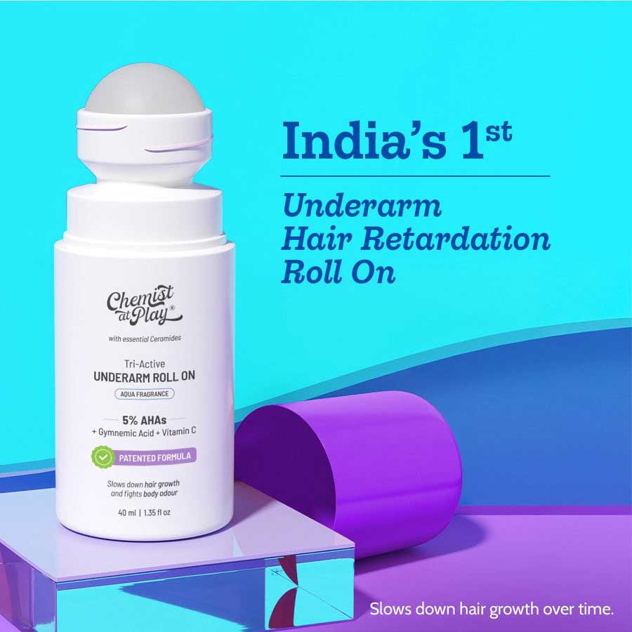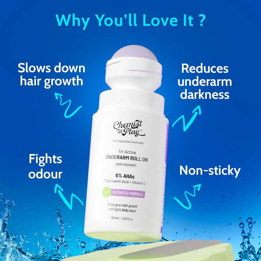 Chemist At Play Tri-Active Underarm Roll On for Hair Growth Reduction (Aqua) 40mL