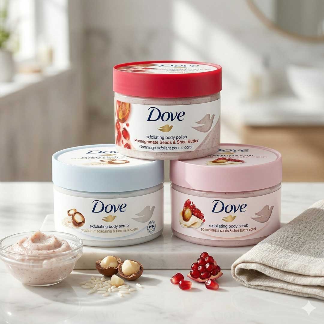 এই Dove body scrub পোমেগ্রানেট সিডস ও শিয়া বাটারের কম্বিনেশনে স্কিনকে করে তোলে ক্লিন, স্মুথ এবং ন্যাচারালি রেডিয়েন্ট। (CCGA)