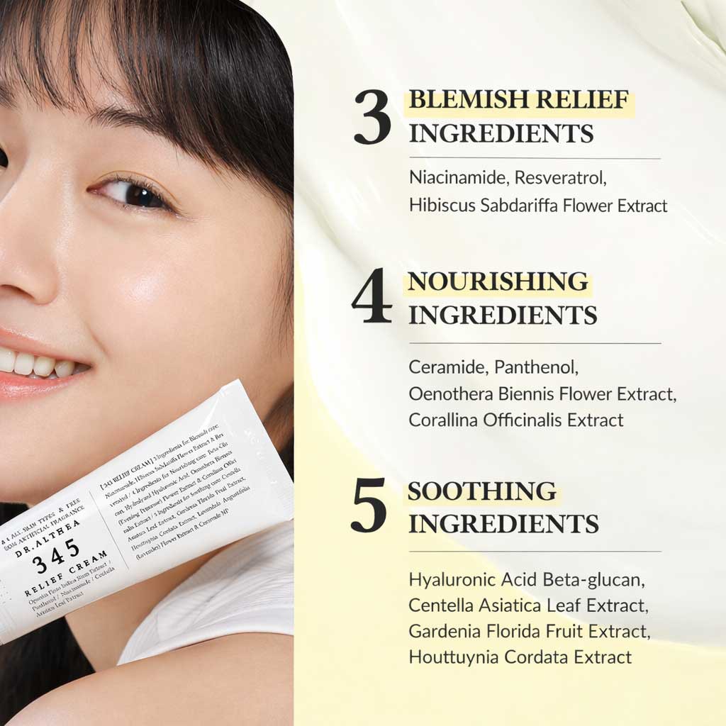 এই ক্রিমের “3-4-5 Relief Formula” ত্বকের তিনটি মূল সমস্যার উপর কাজ করে — blemish care, nourishing repair এবং deep soothing hydration। ফলে এটি acne-prone, irritated এবং damaged skin-এর জন্য বিশেষভাবে উপযোগী।