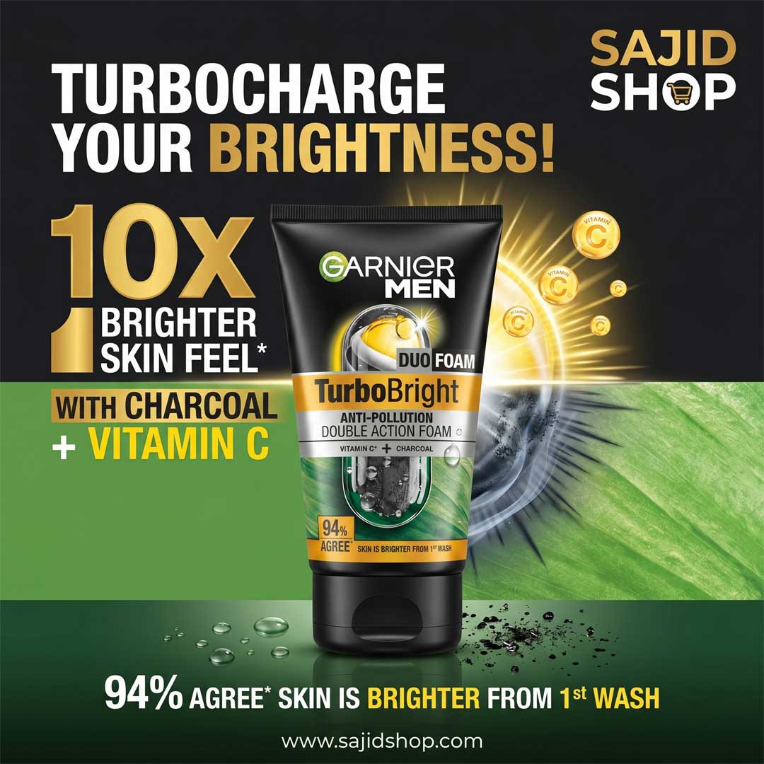 এই প্রোডাক্টটি হলো Garnier Men TurboBright Anti-Pollution Double Action Foam — পুরুষদের স্কিন ক্লিনিং ও ব্রাইটনিং-এর জন্য খুবই জনপ্রিয় একটি ফেসওয়াশ। নিচে আপনার জন্য সোশ্যাল মিডিয়া ও সেলস-ফোকাসড কনটেন্ট সাজিয়ে দিলাম 👇 (EJE)