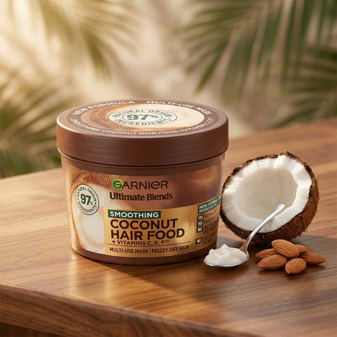 Garnier Ultimate Blends Coconut Hair Food একটি ৩-ইন-১ মাল্টি-ইউজ হেয়ার মাস্ক, যা বিশেষভাবে frizzy ও dry hair এর জন্য তৈরি। ৯৭% ন্যাচারাল অরিজিন ইনগ্রেডিয়েন্টস এবং কোকোনাট এক্সট্র্যাক্ট সমৃদ্ধ এই ফর্মুলা চুলকে গভীরভাবে পুষ্টি জোগায়, স্মুথ করে এবং ফ্রিজ কন্ট্রোল করে। (CFAA)