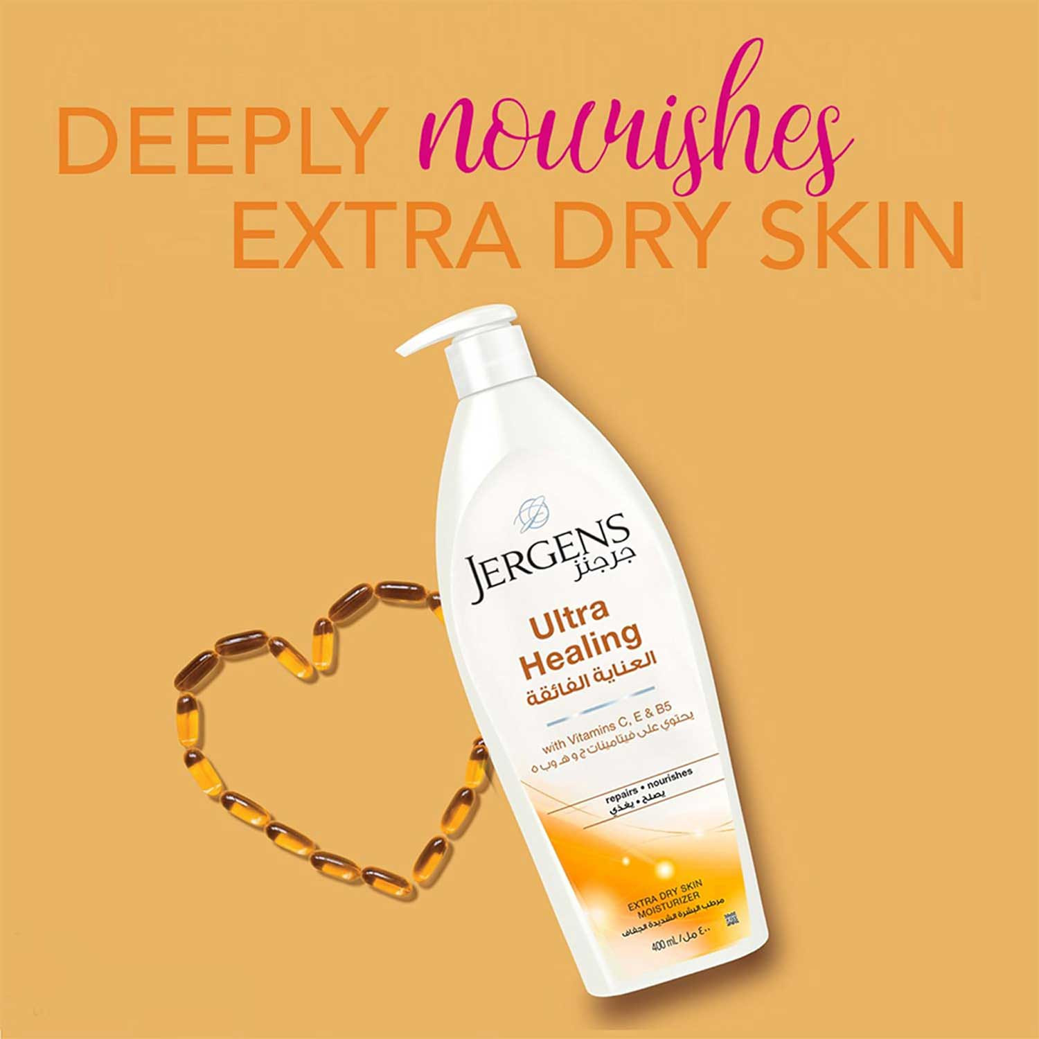 Jergens Ultra Healing Dry Skin Moisturizing Lotion is specially formulated to repair, heal, and deeply nourish extra dry skin. Enriched with Vitamins C, E, and B5, this fast-absorbing lotion penetrates through 5 layers of skin to restore and lock in essential moisture. Perfect for dry hands, rough elbows, knees, and heels, it leaves your skin feeling soft, smooth, and radiant all day long.