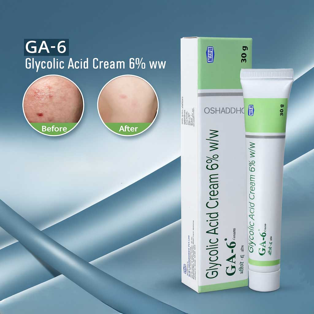Glycolic Acid is a clinically proven Alpha Hydroxy Acid (AHA) that accelerates exfoliation and skin rejuvenation. GA-6 Cream by KLM Laboratories provides professional-grade skincare at home, making it a trusted solution for hyperpigmentation, acne scars, and rough skin problems.
