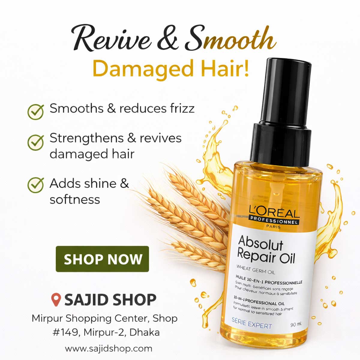 ড্যামেজড, ড্রাই বা ফ্রিজি চুলের জন্য পারফেক্ট সল্যুশন খুঁজছেন? L’Oréal Professionnel Serie Expert Absolut Repair Oil হলো একটি প্রফেশনাল স্যালন-গ্রেড হেয়ার অয়েল, যা চুলকে গভীরভাবে নারিশ করে এবং ড্যামেজ রিপেয়ার করতে সাহায্য করে। (CJAA)