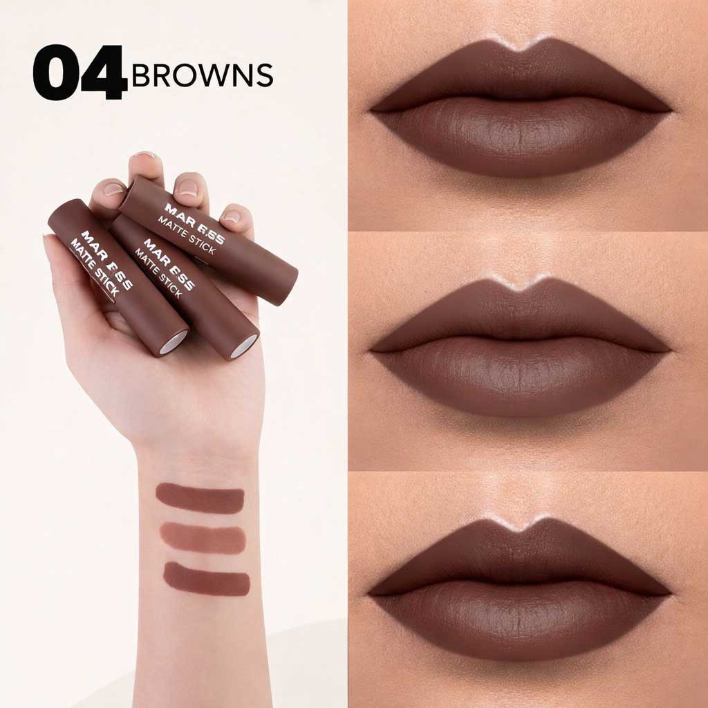 এই Matte Stick গুলো সফট টেক্সচারের, ঠোঁটে সহজে গ্লাইড করে এবং স্টিফ বা ড্রাই অনুভব হয় না। হাই পিগমেন্টেশনের কারণে একবার অ্যাপ্লাই করলেই ডিপ ও ইউনিফর্ম কালার পাওয়া যায়। Browns – 04 ভ্যারিয়েন্টটি বিশেষভাবে তাদের জন্য, যারা নিউড থেকে ডিপ ব্রাউন পর্যন্ত টাইমলেস লুক পছন্দ করেন।