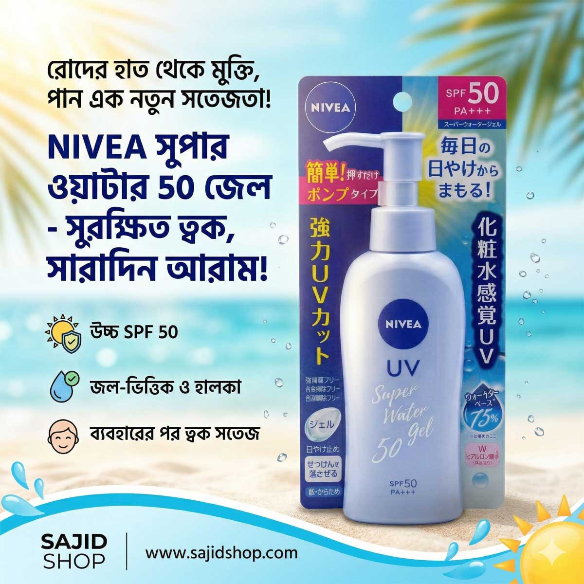 - Ultra-lightweight water gel formula – ত্বকে ভারী লাগে না