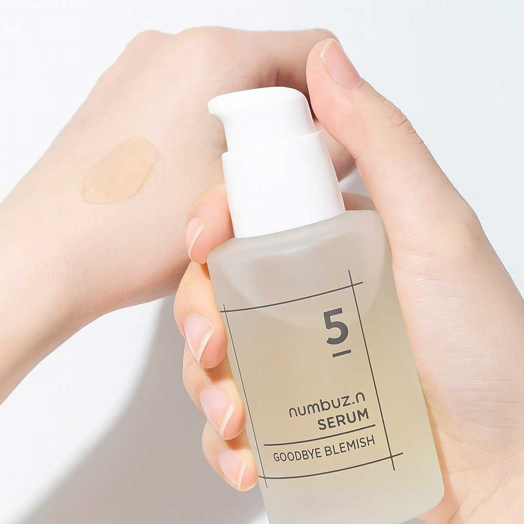 Numbuzin No.5 Goodbye Blemish Serum is a powerful Korean skincare formula designed to fade acne scars, dark spots, and blemishes while soothing sensitive skin. Enriched with Niacinamide, Centella Asiatica, and botanical extracts — it brightens your complexion and restores a clear, radiant glow.