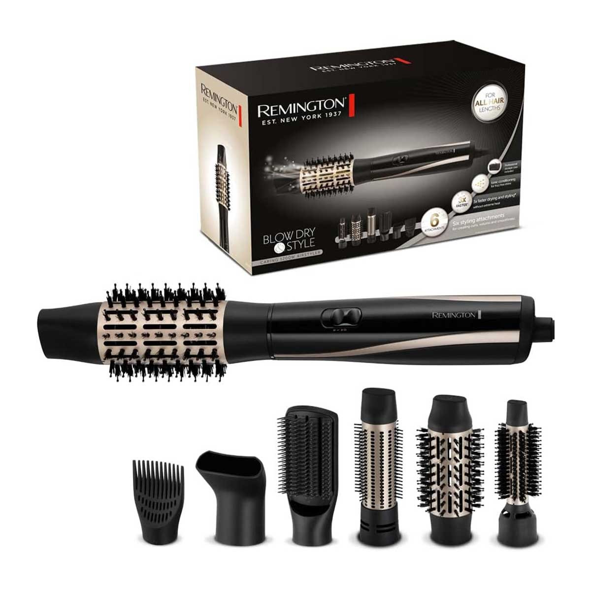 Remington Hot Air Brush [Includes 6 Attachments: 25, 38, 50 mm Round Brush, Styling Nozzle, Flat Brush, Hairline Booster] Blow Dry & Style