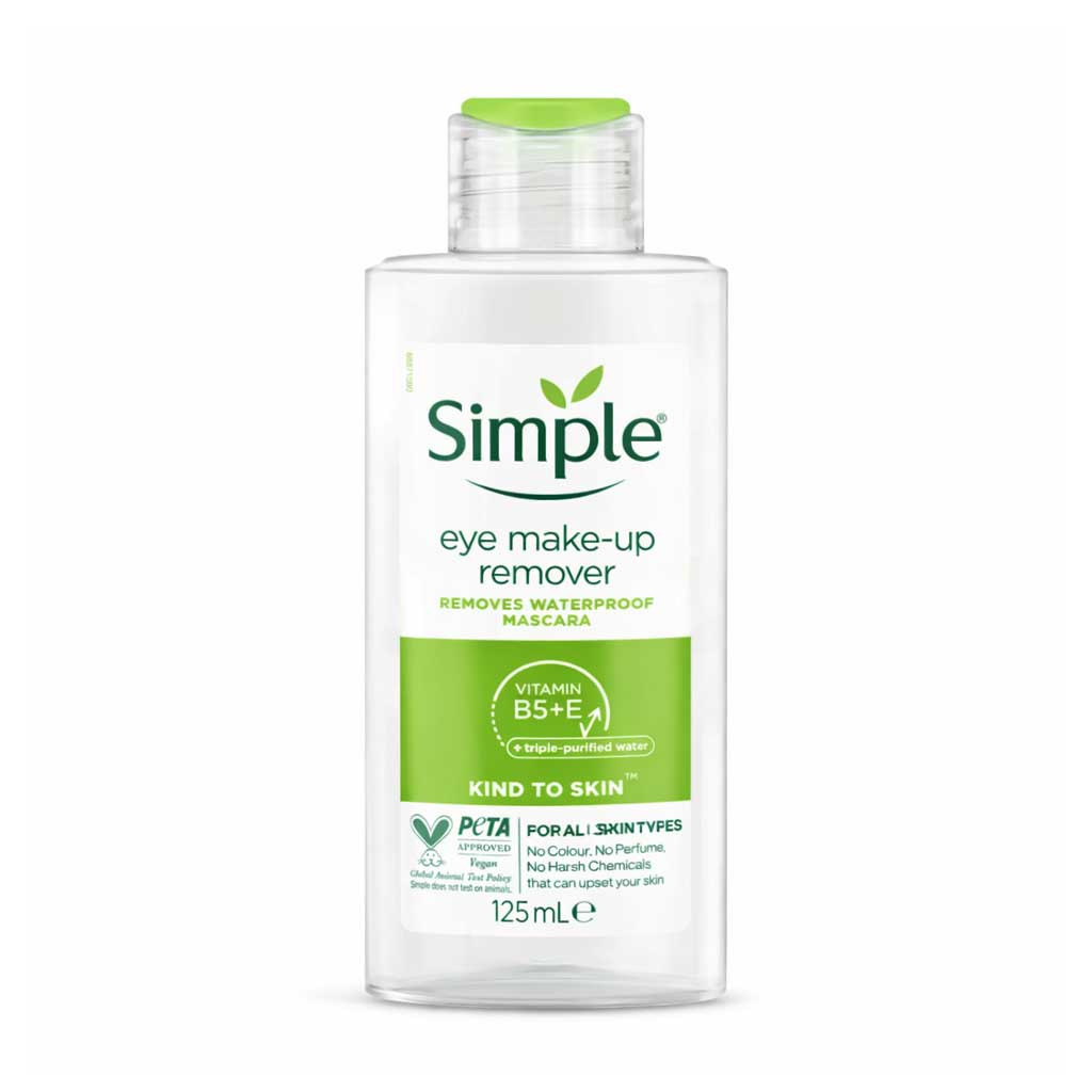 Simple Kind to Skin Eye Make-Up Remover বিশেষভাবে তৈরি করা হয়েছে চোখের আশপাশের নাজুক ও সংবেদনশীল ত্বকের জন্য। এটি আলতোভাবে waterproof mascara, eyeliner এবং eye makeup রিমুভ করে, কোনো রকম জ্বালাপোড়া বা অস্বস্তি ছাড়াই। (FGA)