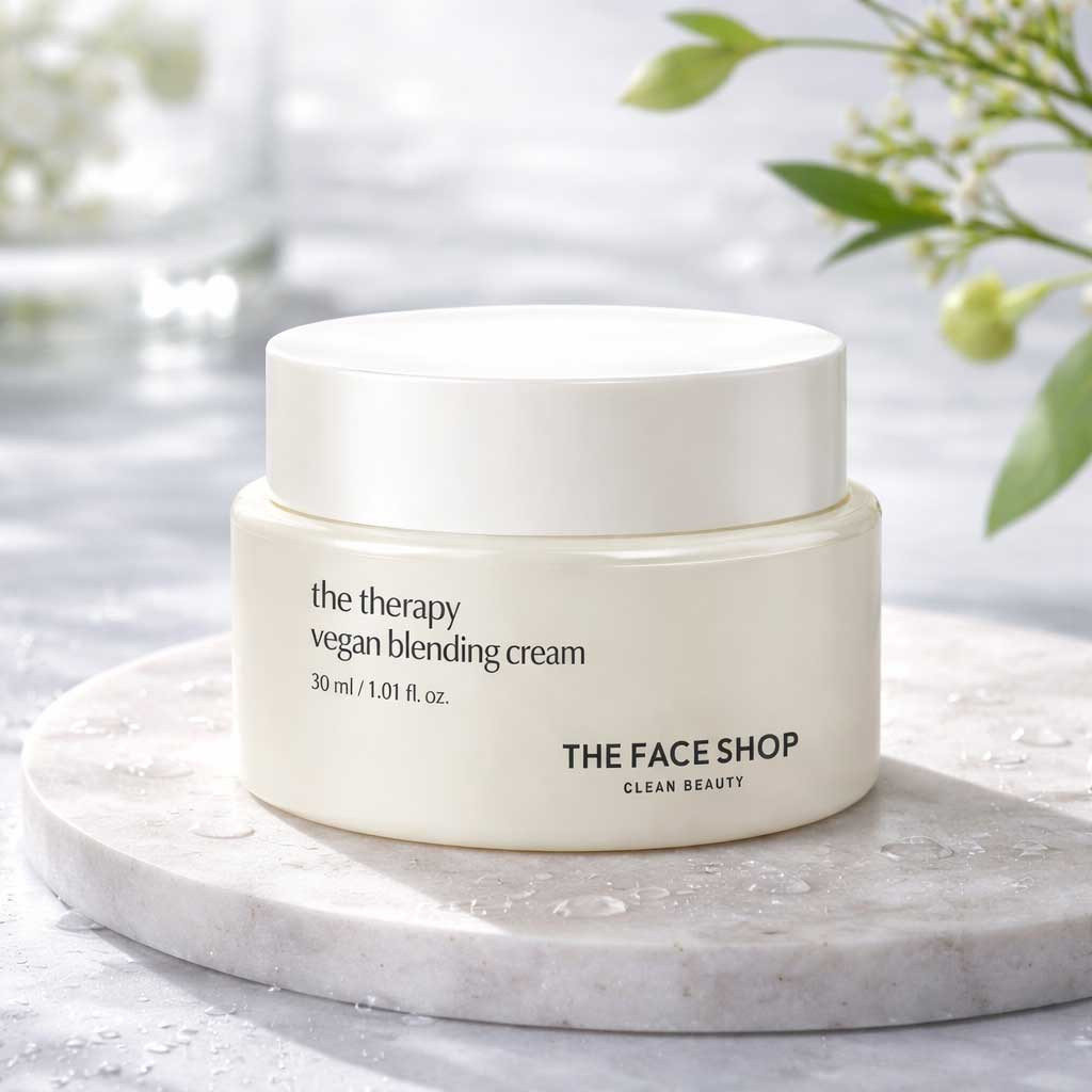 The Face Shop The Therapy Vegan Blending Cream তৈরি করা হয়েছে স্কিন-ফ্রেন্ডলি ভেগান ও ক্লিন বিউটি উপাদান দিয়ে, যা ত্বকে গভীর হাইড্রেশন ও আরাম দেয়।