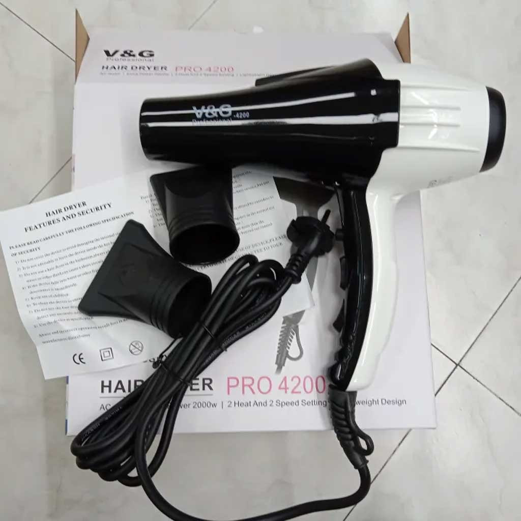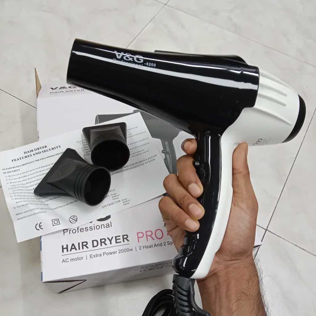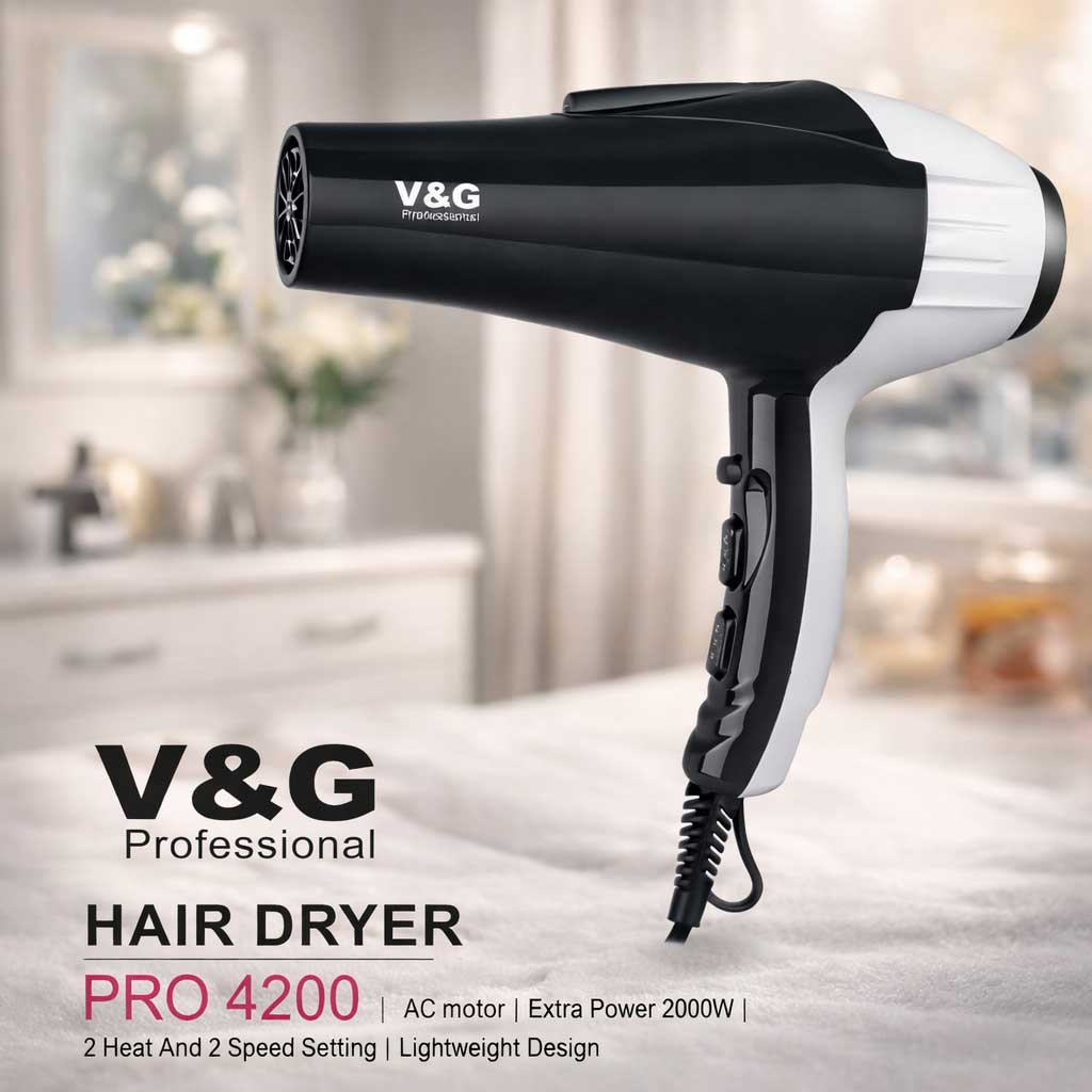 V&G Professional Hair Dryer Pro-4200 একটি শক্তিশালী, হাই-পারফরম্যান্স ড্রায়ার যা সেলুন-গ্রেড হিট আউটপুট ও টার্বো এয়ারফ্লো প্রদান করে। উচ্চ গতির মোটর, ডুয়াল হিট কন্ট্রোল এবং কুল-শট ফিচারসহ এটি দ্রুত চুল শুকায় এবং স্টাইলিং আরও সহজ করে তোলে। যারা পেশাদার মানের ফলাফল চান—সেলুন বা হোম ইউজ—তাদের জন্য এটি একটি নির্ভরযোগ্য ও টেকসই সল্যুশন। (CFAA)